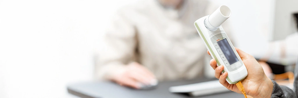 Durch die Spirometrie messen wir präzise Atemvolumina und -flüsse, um mögliche Einschränkungen der Atemwege zu identifizieren.